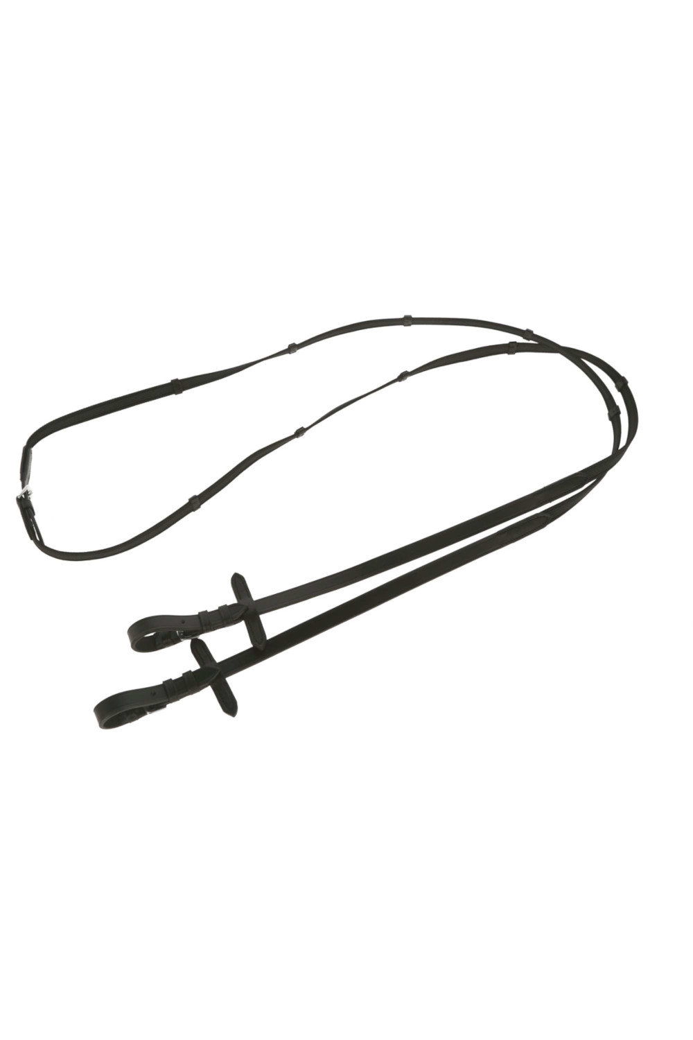 Wodze jeździeckie o gumowanej powierzchni zapewniającej doskonałą przyczepność i pewny chwyt. Wytrzymała konstrukcja z miękkimi skórzanymi końcówkami i ogranicznikami gwarantuje komfort użytkowania i długą żywotność.