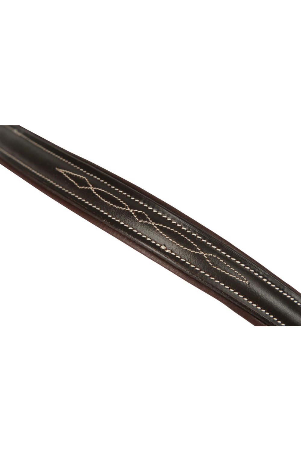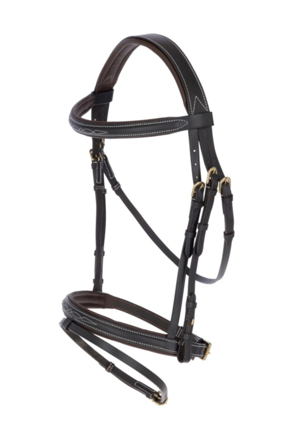 Ogłowie w klasycznym stylu, wykonane z wysokiej jakości skóry, które łączy elegancję i wygodę użytkowania. Subtelne ozdobne przeszycia nadają mu wyjątkowego charakteru, a miękka wyściółka na paskach zapewnia koniowi komfort podczas jazdy. W komplecie znajdują się wodze ze stoperami. Ogłowie sprzedawane jest bez wędzidła.