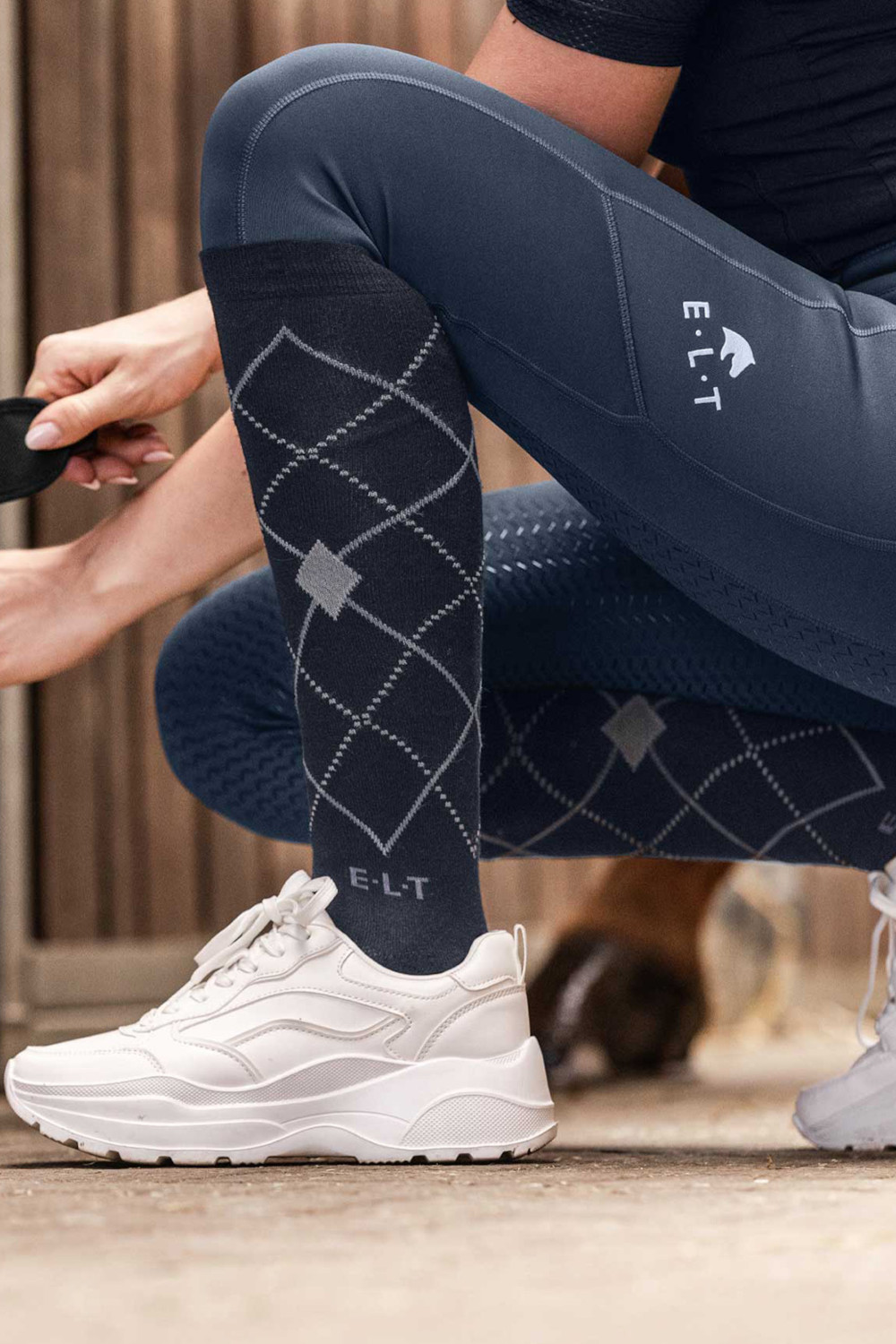 Podkolanówki Argyle to klasyczne podkolanówki jeździeckie w nowoczesną, modną kratę, idealne do codziennych treningów i prac stajennych. Oddychający materiał z wysoką zawartością bawełny zapewnia komfort przez cały dzień, a specjalne strefy dziania na stopie gwarantują optymalne dopasowanie i wygodę w bucie jeździeckim. Skarpety skutecznie odprowadzają wilgoć, dzięki czemu stopy pozostają suche nawet przy intensywnym użytkowaniu.