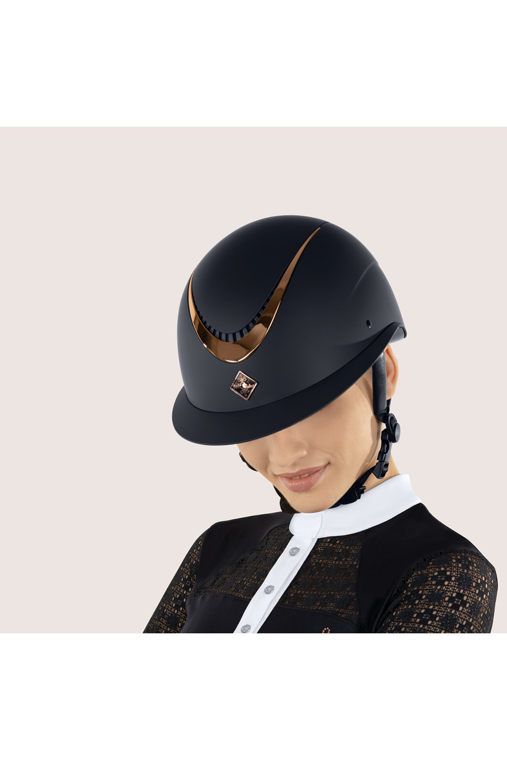 Produkt przeznaczony do jazdy konnej. Kask należy nosić zawsze zgodnie z przeznaczeniem i dopasować go indywidualnie przed każdą jazdą. W przypadku silnego uderzenia zaleca się wymianę kasku, nawet jeśli nie ma widocznych uszkodzeń.