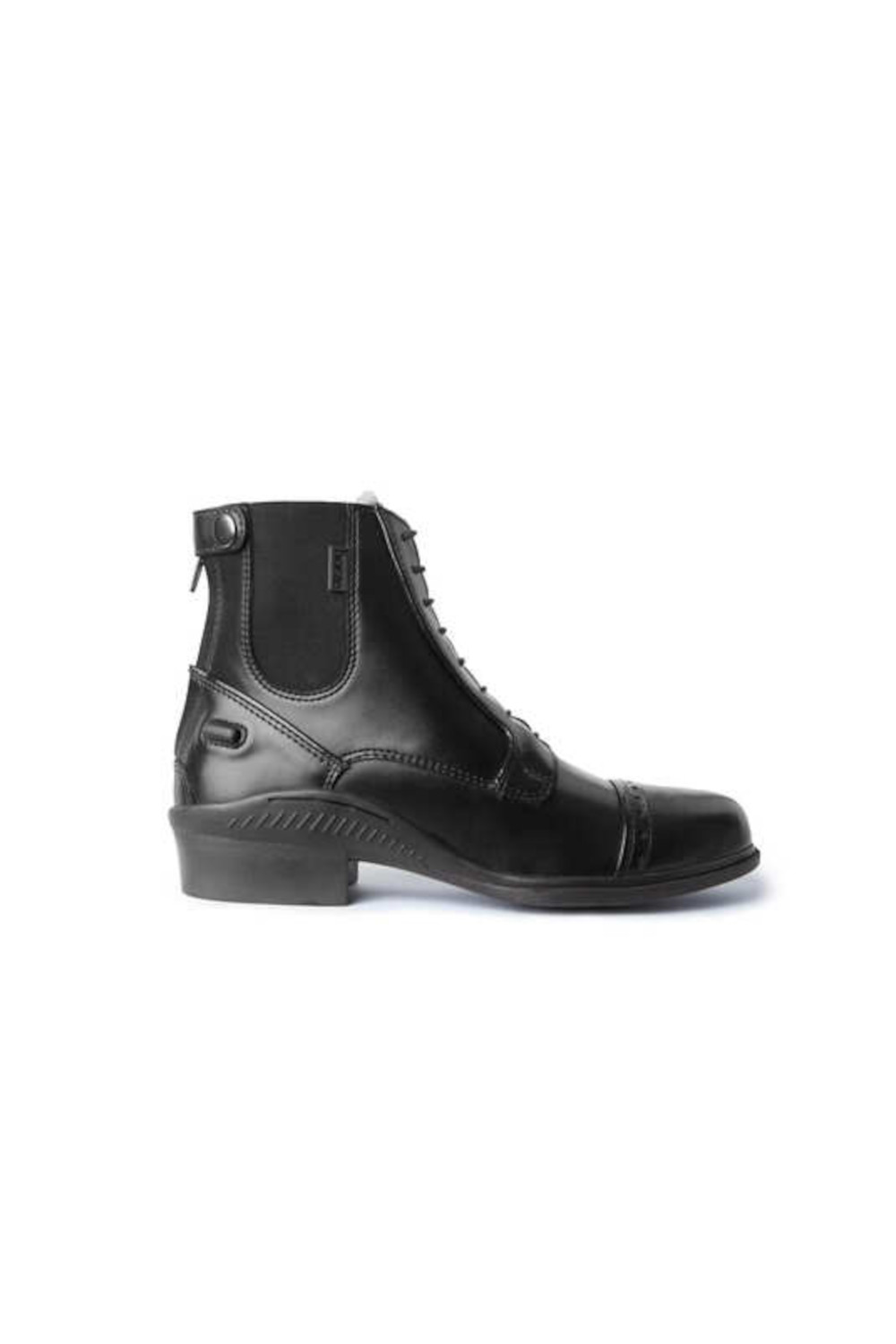 Ciepła podszewka Cambrelle zapewnia komfort termiczny, a elastyczne wstawki po bokach oraz zamek z tyłu ułatwiają zakładanie i zdejmowanie butów. Ozdobne sznurowanie i perforowany wzór typu brogue na nosku nadają im elegancki, ponadczasowy charakter. Model doskonale sprawdzi się zarówno do jazdy konnej, jak i do codziennego użytkowania w stajni.