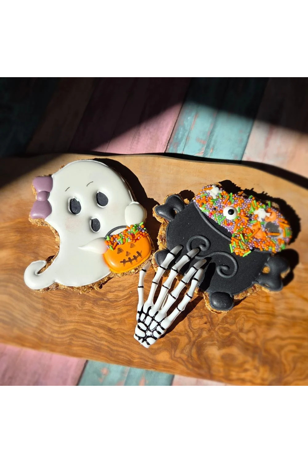 Ozdoby: lukier królewski (cukier, białko jaja kurzego, naturalne barwniki spożywcze)