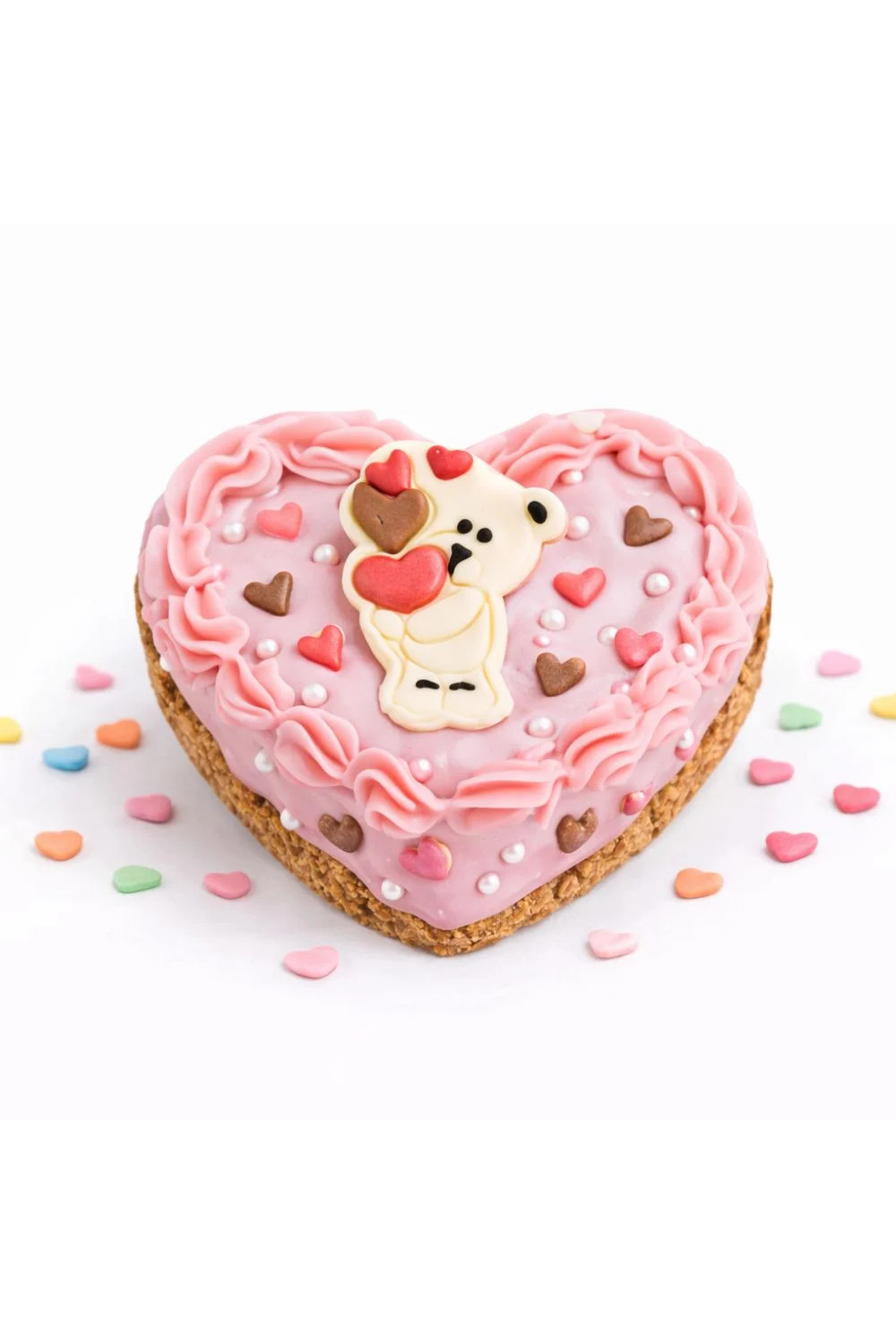 W zestawie znajduje się 1 mini torcik w kształcie serca, ozdobiony masą cukrową i kolorową posypką