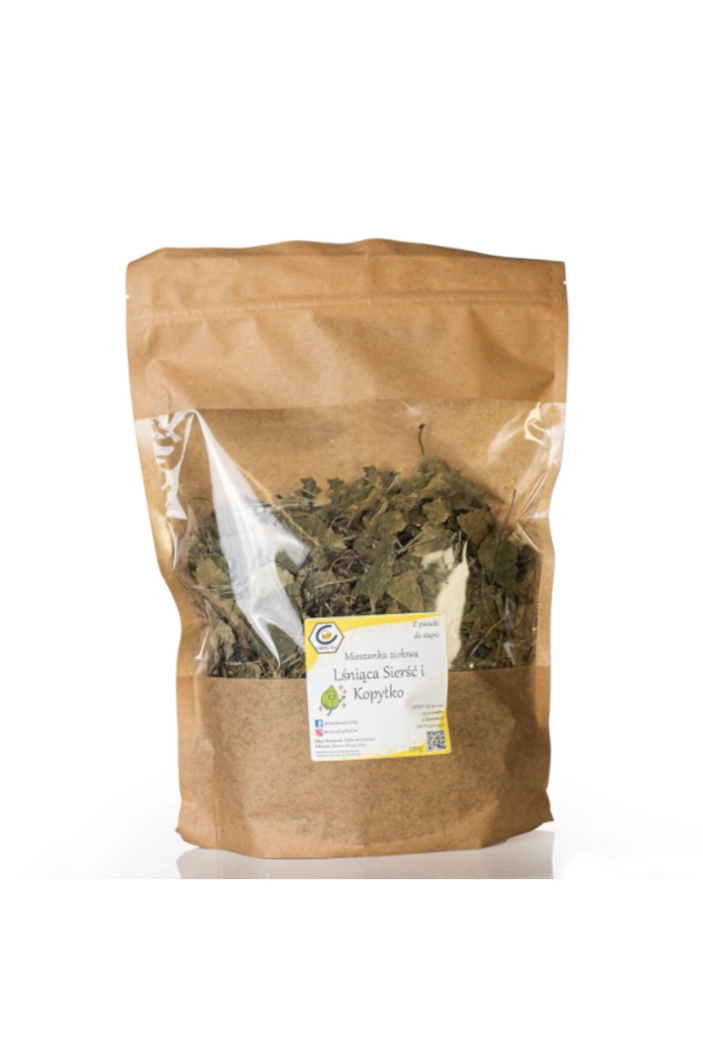 „Lśniąca Sierść i Kopytko” to naturalna mieszanka ziołowa stworzona z myślą o wsparciu zdrowia skóry, sierści oraz kopyt koni. Starannie dobrane zioła bogate w witaminy, minerały i naturalną krzemionkę pomagają poprawić wygląd sierści, wzmocnić strukturę kopyt oraz wspierać regenerację skóry od wewnątrz.
