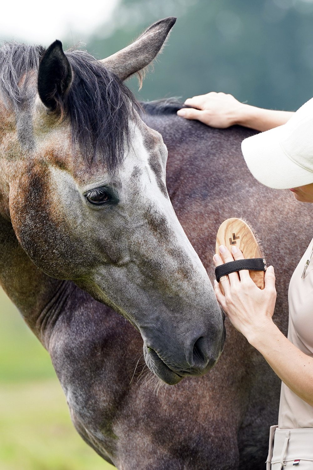 Szczotkuj konia delikatnymi ruchami z włosem. Regularne „polerowanie” sierści pozwala uzyskać głęboki połysk i skraca czas codziennej pielęgnacji. Czyścić na sucho, poprzez wyczesywanie. Nie moczyć.